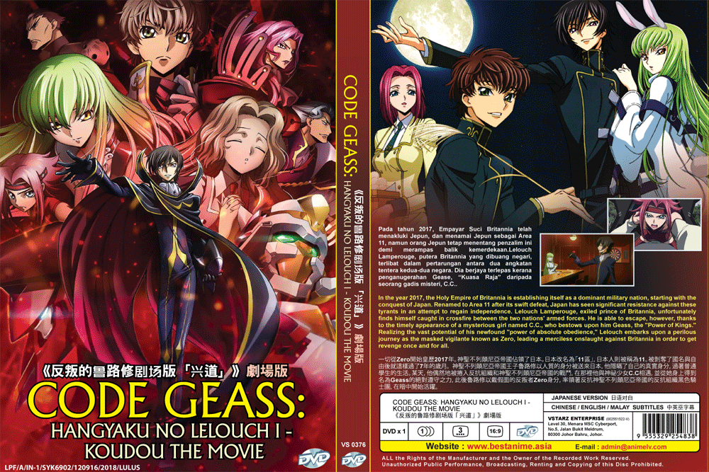 Code geass hangyaku no lelouch i koudou. The film placed 8th at the mini theater ranking on its opening weekend. Esta pelicula es la primera de un remake cinematografico de 3 partes de las primeras 2 temporadas del anime principal. Looking for information on the anime code geass. Lelouch of the rebellion.