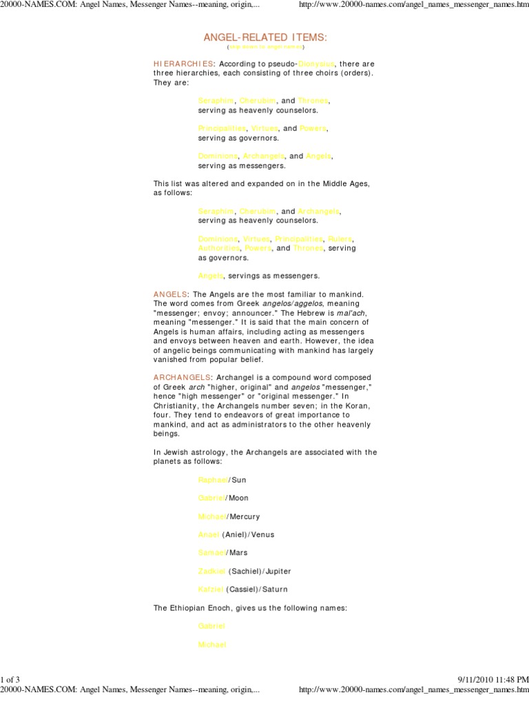 These angel names are of those angels considered to be of a bad nature and not names of good angels. 121 where it translates to kyriotes in greek. These names refer to categories of angels those pure spirits who adore god and serve as his messengers. Dominions regulate the responsibilities of lower angels.