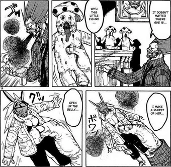 A mushroom consuming narcissistic and infectiously charming man who rules over the magic users world with an iron first. In dorohedoros world only the strongest and most charismatic of sorcerers can stand at the top. En used ebisu as the source where an army of clones came the little girl was exposed to ens magic and her head was turned into a huge mushroom and together aside of creating indestructible mushroom costumes for all the members of the family they proliferate a humongous amount of mushrooms to saturate devil kais body ultimately killing.