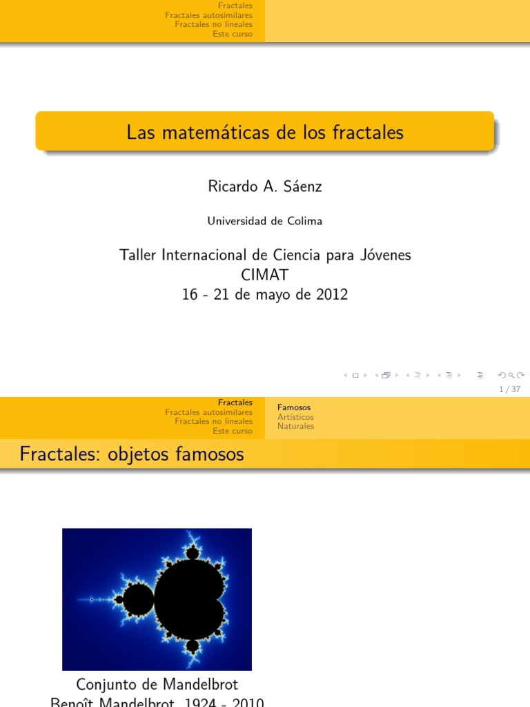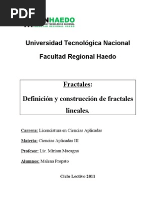 Se caracterizan por su caracter impredecible. Los fractales desde su primera la expresion fractal viene del latin fractus que significa fracturado roto irregular. Existen multitud de fractales naturales en las cosas mas insignificantes y que pasamos por alto cada dia. De matematica aplicada y.