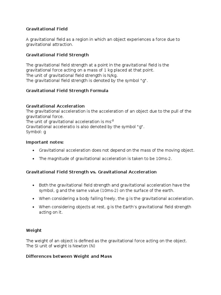 Curriculum key fact weight can be calculated using the equation. In physics a gravitational field is a model used to explain the influence that a massive body extends into the space around itself producing a force on another massive body. The formula for gravitational field intensity is expressed by g fm 366 6. Gravitational field strength is a vector quantity.