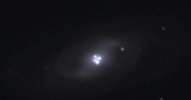 Gravitational lensing einstein cross. However most examples of gravitational lensing are crescents known as einsteins rings. An exploding star directly behind a cluster of enormous galaxies has been split into four images by the light bending. Multiple images of a supernova created by gravitational lensing have been captured for the first time by an international team of astronomers using the hubble space telescope hst. These are called einstein rings named of course for the scientist whose work predicted the phenomenon of gravitational lensing.