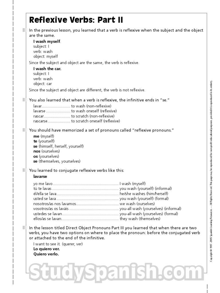 Los pronombres reflexivos son. Read out loud to practice your speaking. Reflexive pronouns are used in spanish and english whenever the subject of a verb is also its object. I watched the final game and enjoyed myself because i was with my friends.