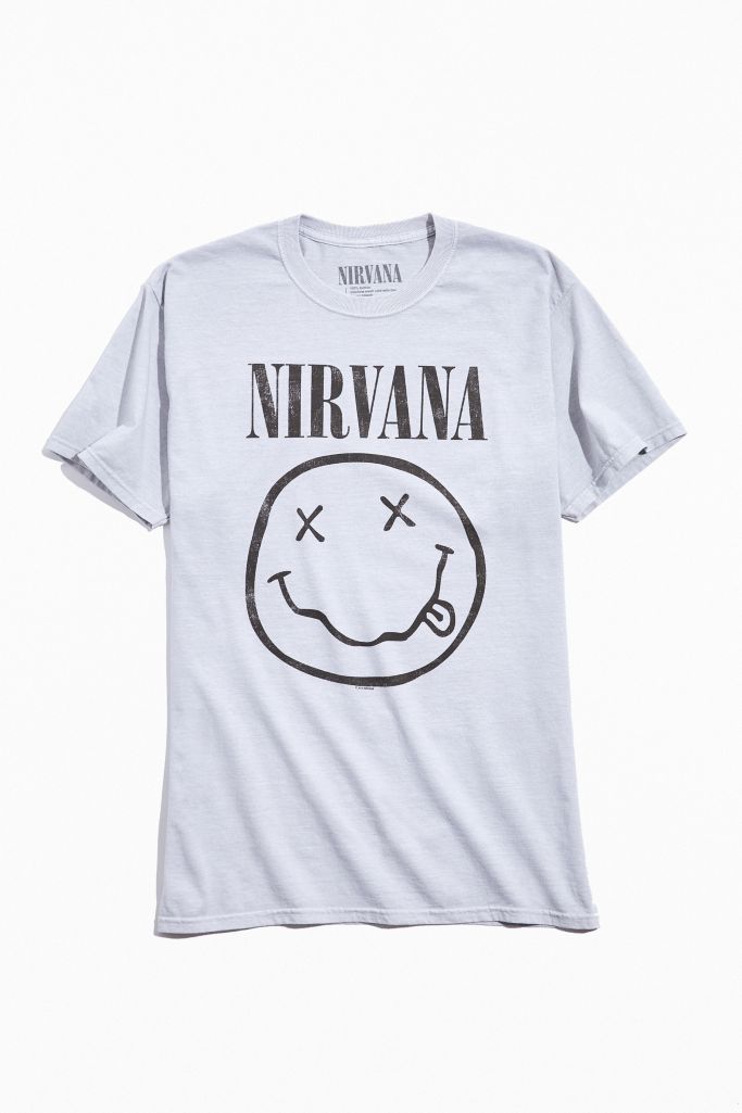 Nirvana shirt white. Fans can purchase exclusive merchandise and the nirvana catalog on vinyl. Only 1 available and its. Nirvana white smiley t shirt as low as 30. Mens nirvana and kurt cobain black and white photo t shirt.