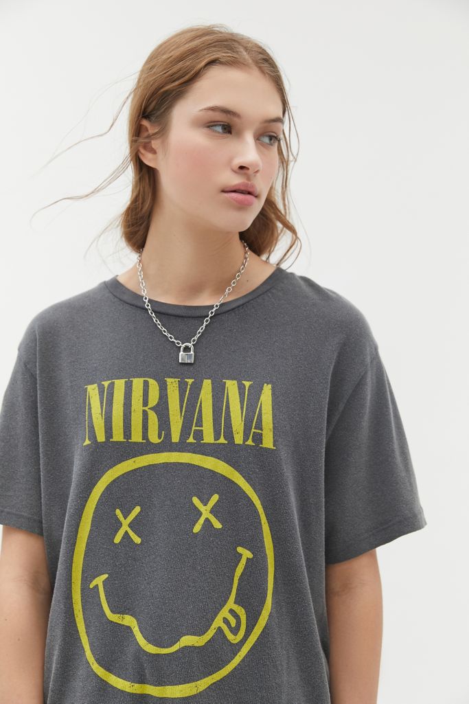 Nirvana t shirt oversized. T shirts and vests are the power players in every manrsquos wardrobe this season the dream team in male dressing gets daring with t shirts and vests taking on poppinrsquo. Topped with a crew neck and short sleeves. Seller assumes all responsibility for this listing. With our incredible range of license t shirts we are pretty sure weve got what you are looking for.