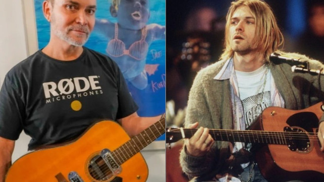 A guitar played by nirvana frontman kurt cobain in a rare acoustic concert has.